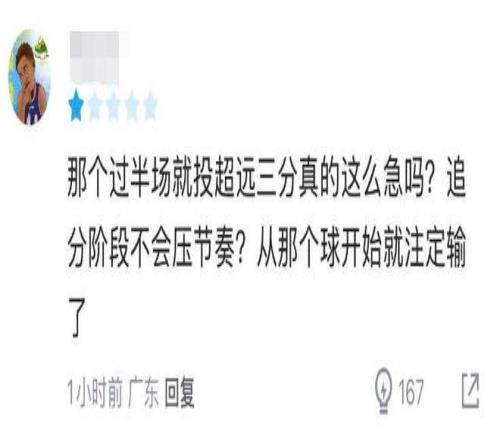 此前胡明軒在低迷的時候,因為故意把比賽節(jié)奏放緩而飽受詬病,最近他好不容易跟上球隊的快節(jié)奏,但在本場對陣寧波需要降速、壓節(jié)奏時,胡明軒反倒是一個勁地沖,在球隊落后5分的情況下,他那記超遠三分打鐵,也為球隊最后的失利埋下伏筆。