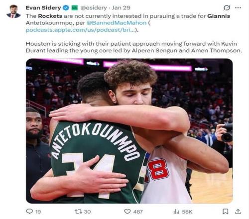 "如果字母哥真來火箭,建議直接交易哈登換回幾個首輪!"