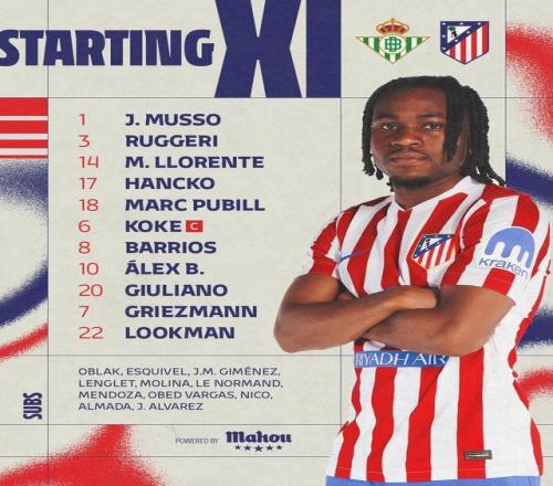 馬競(jìng)客戰(zhàn)貝蒂斯:格列茲曼、小西蒙尼首發(fā)出戰(zhàn),盧克曼首秀