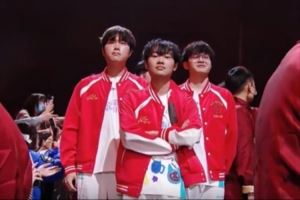 AL對(duì)陣BLG登場(chǎng)儀式:雙方隊(duì)員身披紅色戰(zhàn)袍為觀眾派發(fā)紅包
