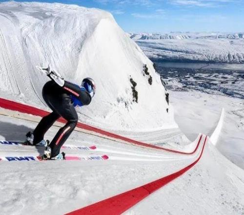 運動員首先要從一個長長的斜坡上滑下來,達到驚人的速度。