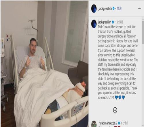 格拉利什通過社交媒體確認他接受了腳部應力性骨折手術。
