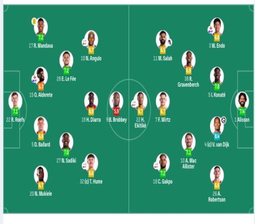 利物浦首發(fā):1-阿利松、26-羅伯遜、4-范戴克、5-科納特、38-赫拉芬貝赫、3-遠(yuǎn)藤航(69’2-戈麥斯)、10-麥卡利斯特、7-維爾茨、11-薩拉赫、18-加克波(75’17-瓊斯)、22-埃基蒂克(88’14-基耶薩)。