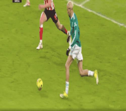 第33分鐘,接到加克波的傳中,維爾茨在人群中兜射遠(yuǎn)角,皮球擊中立柱,彈了出來。