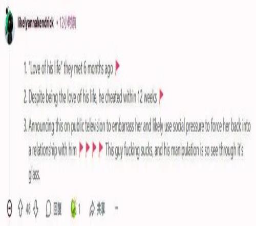 他公開(kāi)宣布這件事,讓她難堪,很可能是想利用社會(huì)輿論壓力逼她回到他身邊。這家伙真是太爛了,他PUA的手段一眼就能看穿?!?/p>