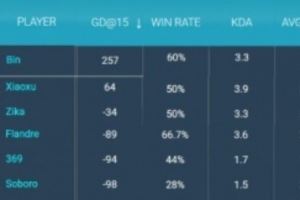 LPL第一賽段常規(guī)賽登峰組上單數據:前15經濟差Bin第一257