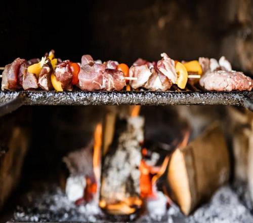 當(dāng)?shù)夭蛷d的招牌菜多是炭烤野豬肉,選用當(dāng)?shù)厣搅种械囊柏i肉,經(jīng)過(guò)腌制后用炭火慢烤,外皮焦脆,肉質(zhì)鮮嫩多汁,帶著淡淡的煙熏味,搭配特制的醬料和新鮮的蔬菜,口感豐富,回味無(wú)窮。再配上一杯特倫蒂諾紅酒,這款來(lái)自意大利北部產(chǎn)區(qū)的紅酒,酒體飽滿,單寧柔和,果香濃郁,與野豬肉的風(fēng)味完美契合坐在露臺(tái)的長(zhǎng)椅上,眼前是五塔山的絕美全景,雪花偶爾落在肩頭,耳邊是木屋傳來(lái)的歡聲笑語(yǔ),那種人與自然融為一體的愜意,讓人忘卻了時(shí)間的流逝。