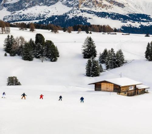 最令人心動(dòng)的是,這條雪道的終點(diǎn)直接銜接高山木屋Rifugio Scoiattoli,省去了趕路的煩惱,實(shí)現(xiàn)了滑雪與Aprés-ski的無(wú)縫銜接。滑完雪,無(wú)需長(zhǎng)途跋涉,只需幾步便能走進(jìn)溫暖的木屋。坐在露臺(tái)的長(zhǎng)椅上,脫下滑雪靴,換上舒適的拖鞋,點(diǎn)一份炭烤野豬肉,搭配一杯醇厚的特倫蒂諾紅酒,眼前是五塔山的壯麗全景,耳邊是風(fēng)雪掠過(guò)松林的輕響,那種松弛與愜意,正是科爾蒂納獨(dú)有的度假美學(xué)。