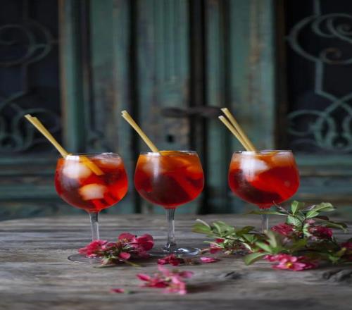 在科爾蒂納的木屋、酒吧、露臺(tái),傍晚時(shí)分,人們總會(huì)點(diǎn)上一杯Aperol Spritz,這款由金酒、阿佩羅苦酒、普羅塞克起泡酒和蘇打水調(diào)制而成的雞尾酒,色澤橙黃,口感清爽,帶著淡淡的苦味與果香,配上咸香的火腿、酥脆的面包、新鮮的奶酪等aperitivo小食拼盤(pán),既能緩解滑雪后的疲憊,又能開(kāi)啟一場(chǎng)愉悅的社交之旅。