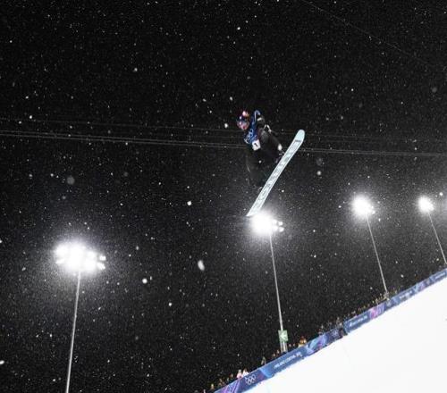 2月12日,韓國(guó)選手崔佳溫在米蘭冬奧會(huì)單板滑雪女子U型場(chǎng)地技巧決賽中。新華社記者 夏一方 攝