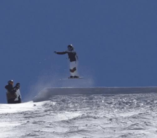 另外一個難點在于高速的回轉(zhuǎn)滑行狀態(tài)和起跳狀態(tài)的切換。從蘑菇田到跳臺的過渡距離大約三米,運動員要盡可能地提升速度,才能為跳躍積累足夠的高度。從50-70厘米高的跳臺飛出并完成高難度動作(如帶轉(zhuǎn)體的空翻)后,還要精準地落入緊隨其后的蘑菇田,立刻切換滑行模式,恢復回轉(zhuǎn)節(jié)奏。