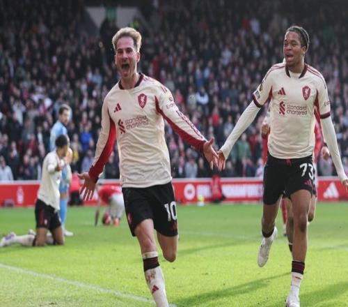 下半場(chǎng)易邊再戰(zhàn)。米倫科維奇的頭球攻門(mén)稍稍偏出左側(cè)立柱。第55分鐘,瓊斯的近距離射門(mén)被擋了出去。巴夸的遠(yuǎn)射偏出了球門(mén)。利物浦在第77分鐘進(jìn)行換人調(diào)整,恩古莫哈和基耶薩替補(bǔ)上場(chǎng),換下薩拉赫和加克波。第86分鐘,吉布斯-懷特的射門(mén)被擋出。隨后,埃納解圍球擊中麥卡利斯特身上彈進(jìn)球門(mén)。但因?yàn)槭智虮淮档?。?7分鐘,利物浦完成極限絕殺!麥卡利斯特門(mén)前抓住機(jī)會(huì)補(bǔ)射破門(mén)!真是神劇情!最終,利物浦1-0擊敗諾丁漢森林。